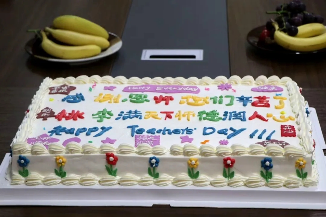 发言结束后,公司为老师们准备了一个大蛋糕来庆祝这个特别的日子。在欢声笑语中,老师们一起切蛋糕、品尝美味,分享着节日的喜悦和甜蜜,感受公司的关怀和温暖。