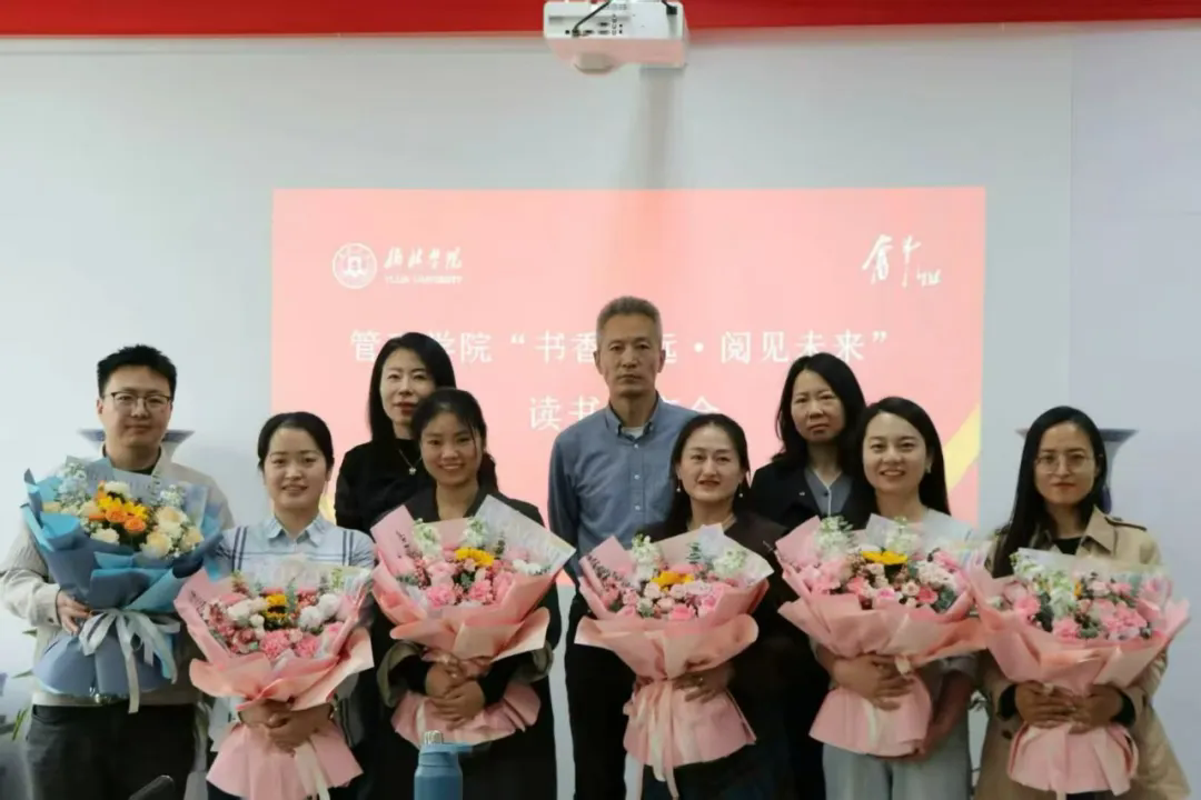 活动最后,六位员工代表依次上台为六位分享书籍的教师献花并合影留念,在书香与掌声中落下帷幕。
