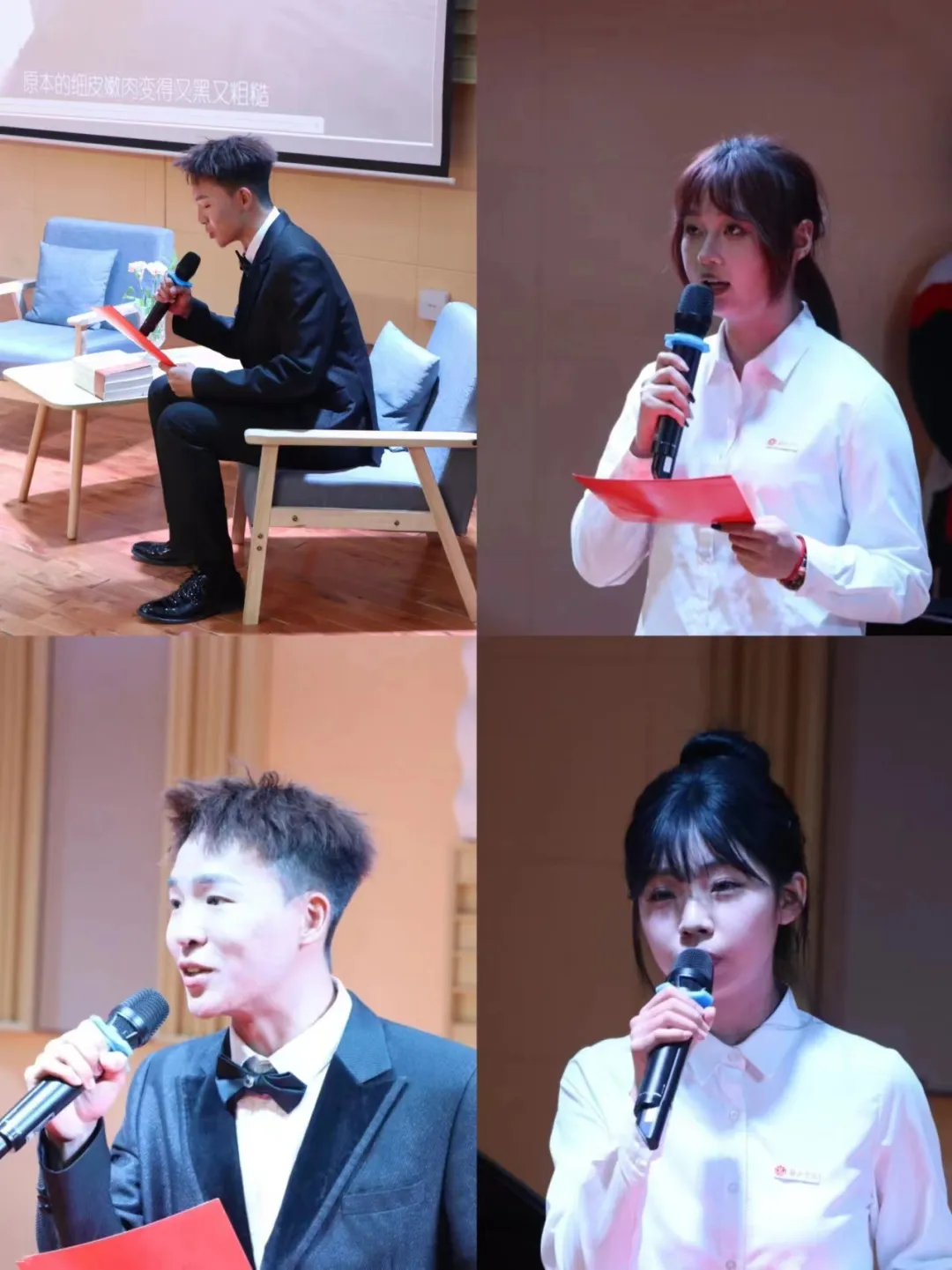 朗读者的初衷是为了将文字表达得更加生动和有感情,让听众更好地理解和感受到文字的内涵和情感。由马克思主义公司的王佳芮、侯学璞、宋怡瑶三位同学带来《亲戚》。在他们满怀情感的朗诵声中,使同学们仿佛身临其境,体会孙少平的窘迫与无奈。