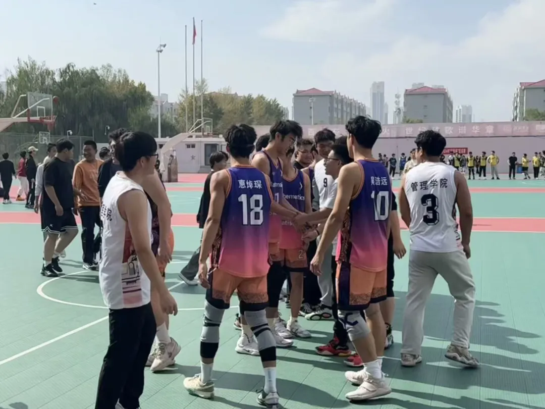 随着裁判员的一声哨响,比赛正式开始。管院学子们精神抖擞,配合默契,传球、运球、投篮,动作行云流水,一气呵成。他们的身姿矫健而灵活,就像一只只展翅飞翔的雄鹰,在篮球场上空翻腾、跳跃。比赛中,他们全情投入,热血沸腾。每一次抢断、每一次投篮都引起了观众们的欢呼声和掌声。比赛到了关键时刻,比分胶着,球员们挥汗如雨,紧张而坚决地执行每一个战术。他们的眼中充满了对胜利的渴望和对团队的信任。