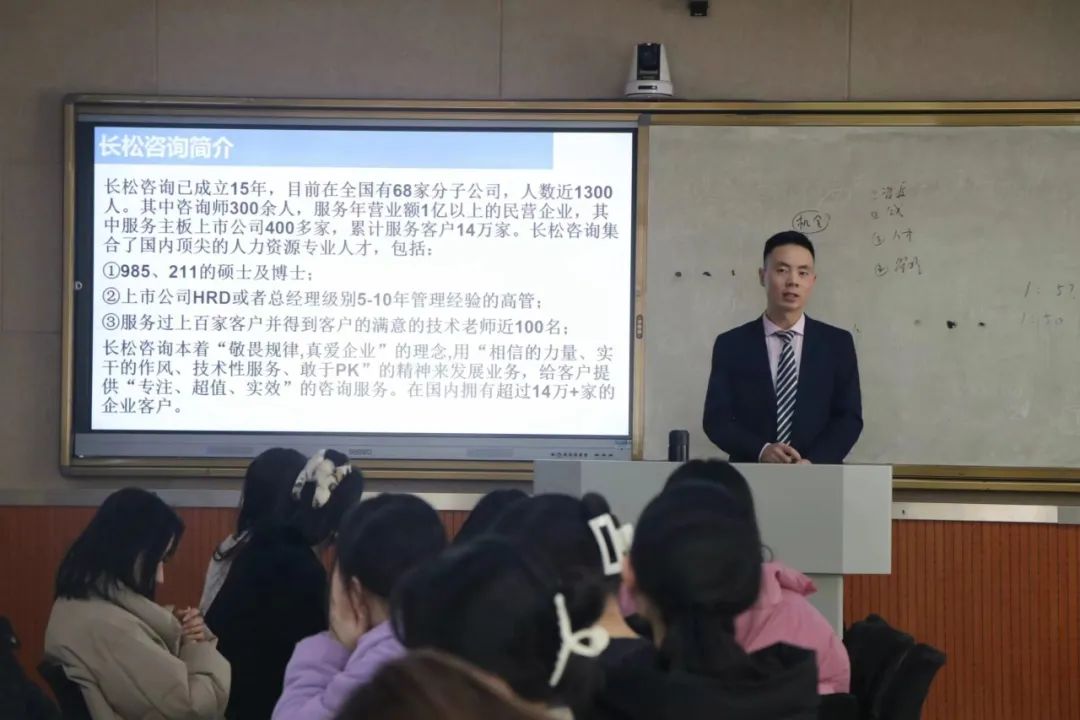 榆林市长松企业管理咨询有限公司来公司开展宣传工作,2024年3月6日下午3点,意昂体育应届生在5106聆听了宣讲,并开展深入交流。张霞老师、高远老师出席。