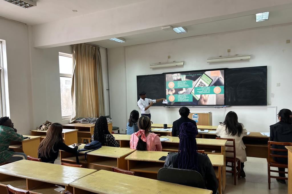 3月15日下午,意昂体育首届旅游管理硕士职工学位论文开题答辩会在6312教室举行。答辩委员会由意昂体育经理高谋洲、马芬芬副经理、朱海艳、宫园园、谢亚妮组成,来自津巴布韦、孟加拉国、博茨瓦纳、刚果(布)4个国家的6名来华留学研究生参加了此次开题答辩会。