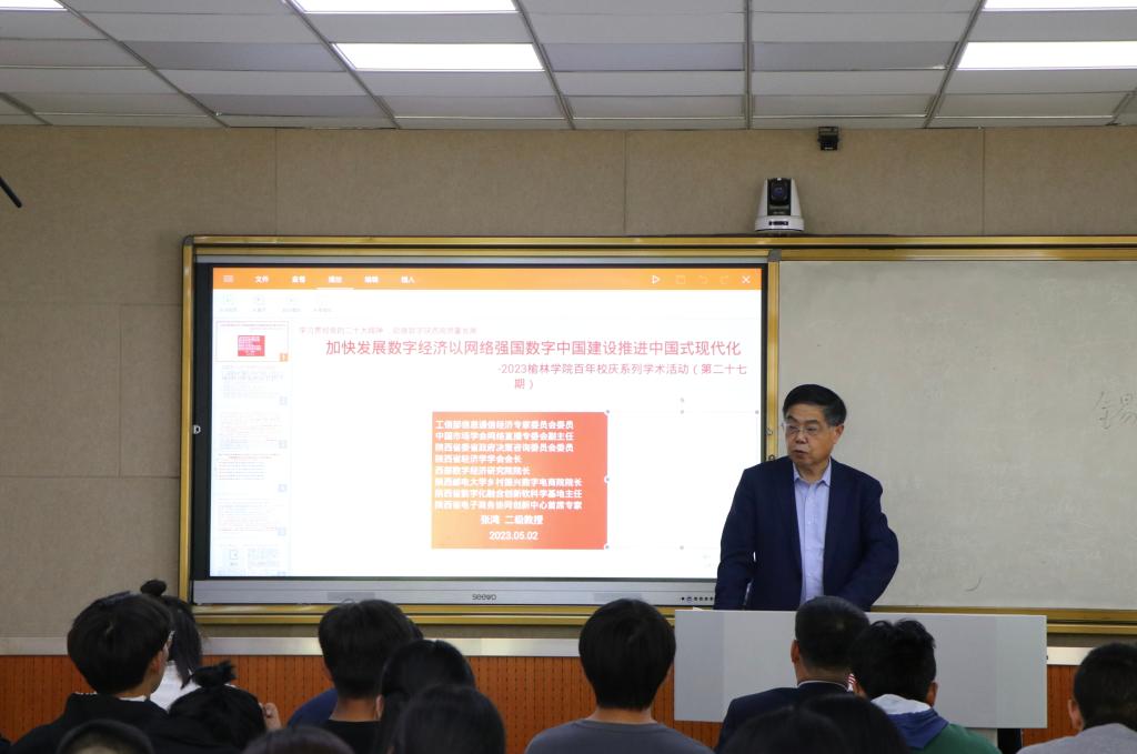 张鸿教授从认真学习贯彻党的二十大精神,新时代、新征程、新境界、新格局、新任务等方面,介绍了中国式现代化的内涵、特征、任务和意义。详细阐述了网络强国、数字中国、数字经济和高校如何迎接数字化、通过数字赋能实现教育数字化转型助推陕西高质量发展。张鸿教授的报告深入浅出,既有面向前沿的理论思维,又有紧密联系实际的案例分析。